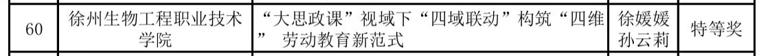 近日,根据《关于开展2025年江苏省第二届高等学校劳动教育优秀实践项目评选工作的通知》(苏高教会〔2025〕1号),由我校马克思主义学院申报的《“大思政课”视域下“四域联动”构筑“四维”劳动教育新范式》项目荣获特等奖。